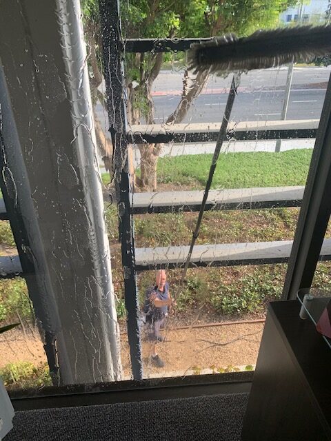 In most cases, we clean each window by hand via soap/squeegee, but in special circumstances, we can also use our purified water cleaning system for cleaning windows, also known as "Tucker Poles" for cleaning otherwise hard to reach upper floors.